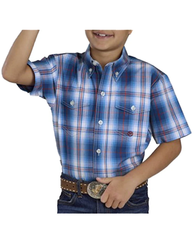 Roper Boys' Plaid Print Short Sleeve Button-Down Western Shirt