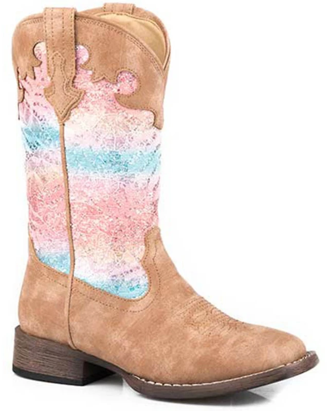Roper Little Girls' Glitter Rainbow Western Boots - Broad Square Toe