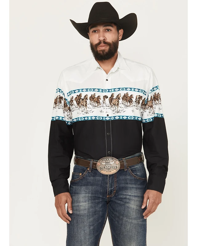 Roper Men's Horse Border Print Long Sleeve Snap Western Shirt