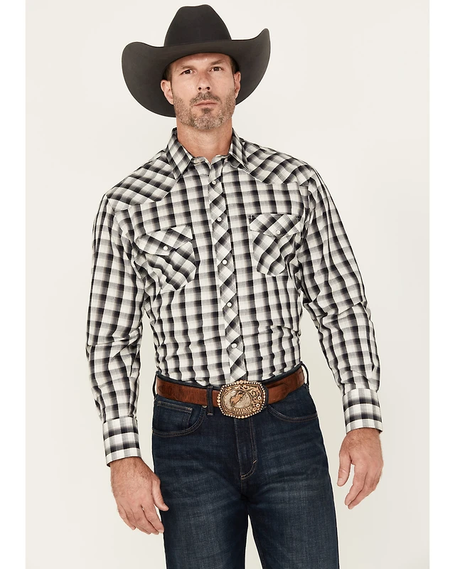 Roper Men's Plaid Print Long Sleeve Pearl Snap Western Shirt