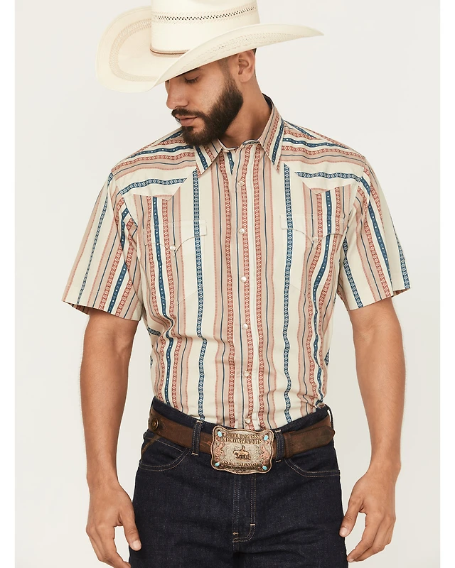 Roper Men's West Made Southwestern Striped Short Sleeve Pearl Snap Western Shirt