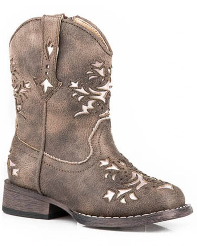 Roper Toddler Girls' Lola Brown Metallic Underlay Western Boots - Square Toe