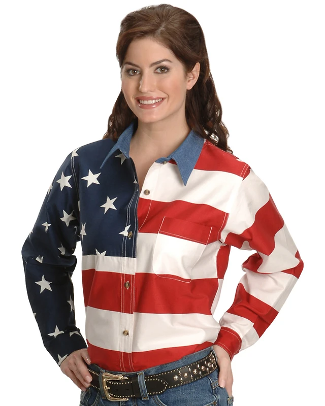 Roper Women's Long Sleeve American Flag Shirt - Plus