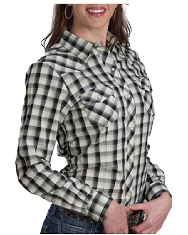 Roper Women's Plaid Print Long Sleeve Snap Western Shirt