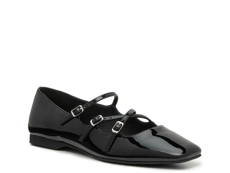 Show off modern style with the Roree flat from Steve Madden. The strappy upper features a sleek patent finish and a squared off toe for trendy appeal.