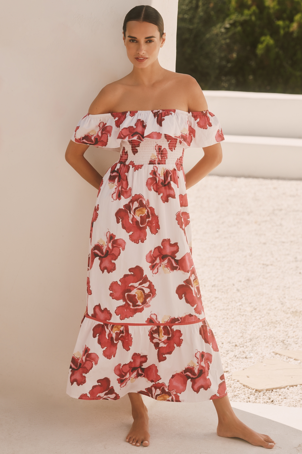 Ro's Garden Chelsea Cotton Off-The-Shoulder Midi Dress