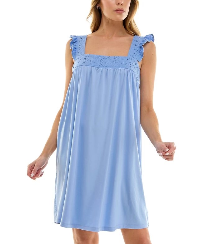 Roudelain Women's Eyelet-Knit Ruffled-Edge Sleep Dress