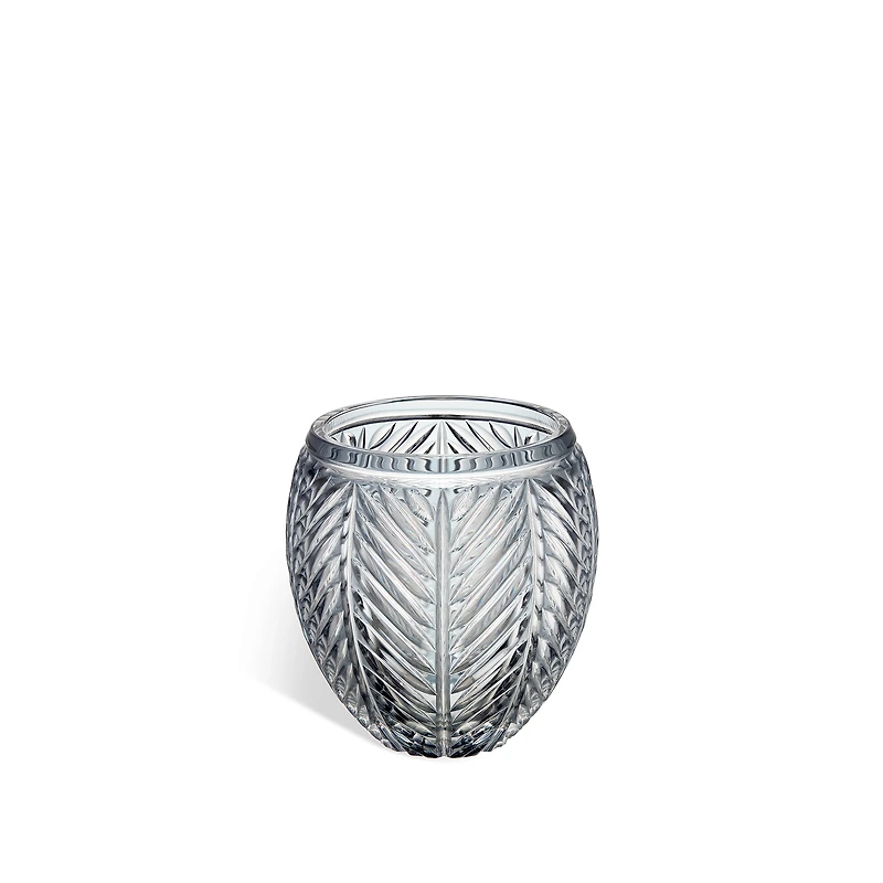 The round vase is adorned with the Chevrons motif, an iconic House code. Handcrafted in transparent crystal, the engraved vase reveals this harmonious pattern in a subtle interplay of reflections showcasing vibrant amber tones. The creation will lend a graphic touch to interiors and can be coordinated with other Maison pieces for a resolutely Dior atmosphere.