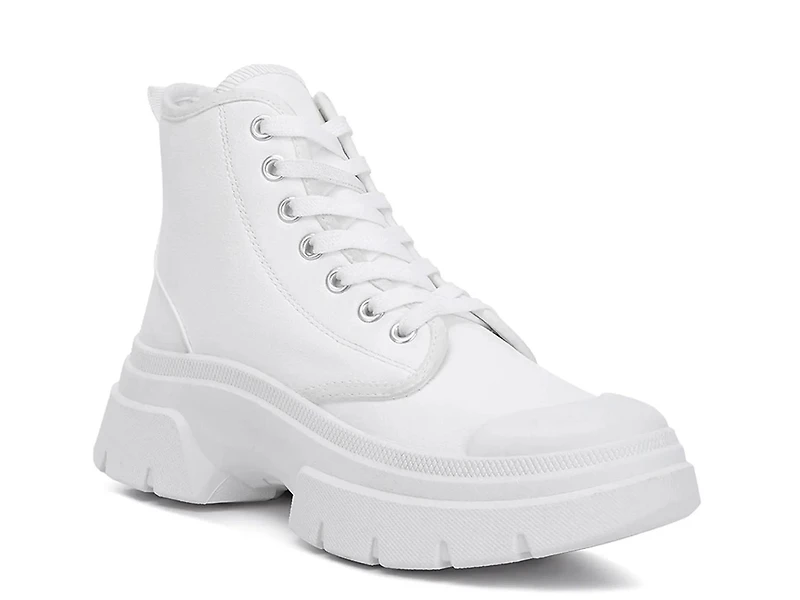 Lean into your edgy side and add the London Rag Roxane combat boots to your collection. This pair features a classic lace-up design, a strong chunky sole, and a simple monochromatic hue.