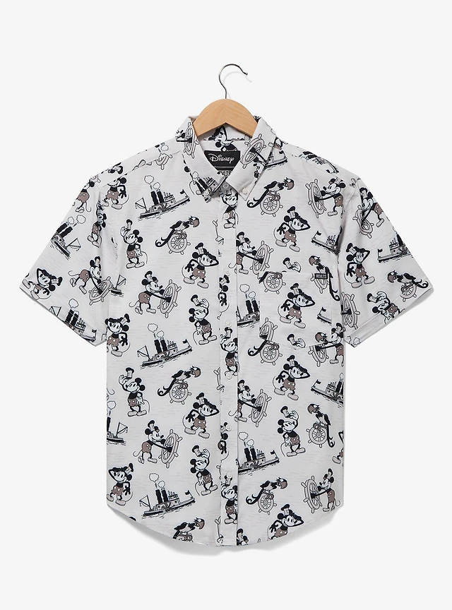 RSVLTS Disney Mickey Mouse Steamboat Willie Allover Print Woven Button-Up Top - BoxLunch Exclusive