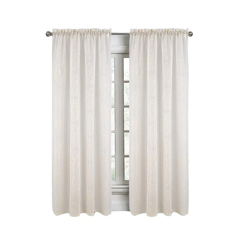 Andrea's metallic sheen damask curtain panel is a delightful addition to your home decor, seamlessly blending elegance with functionality. Crafted with luxurious metallic Polyester fabric, this door curtain adds an air of sophistication to any room. The intricate damask embroidery enhances the panel, making it a standout piece for your windows. With generous dimensions of 54" x 95" long, this curtain provides ample coverage for larger windows. The sheer fabric gently filters sunlight, creating a soft and inviting atmosphere while maintaining privacy and style. Installation is a breeze with the rod pocket design. Plus, the Andrea room darkening curtains are machine washable, allowing for easy maintenance and lasting freshness. Elevate your living space effortlessly with this beautiful window treatment that adds a touch of sophistication while allowing natural light to filter through. Color: Gold.
