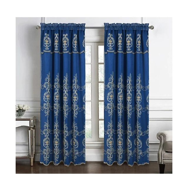 Rt Designers Collection Jayla Stylish & Premium Embroidered Curtain Panel 54" x 90" Navy