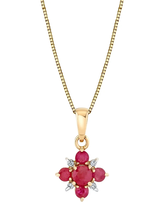 Ruby (5/8 ct. t.w.) & Diamond Accent Floral Cluster 18" Pendant Necklace in 10k Gold