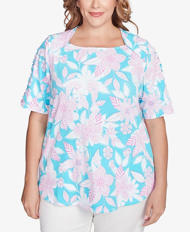 Ruby Rd. Plus Floral Oasis Square Neck T-Shirt