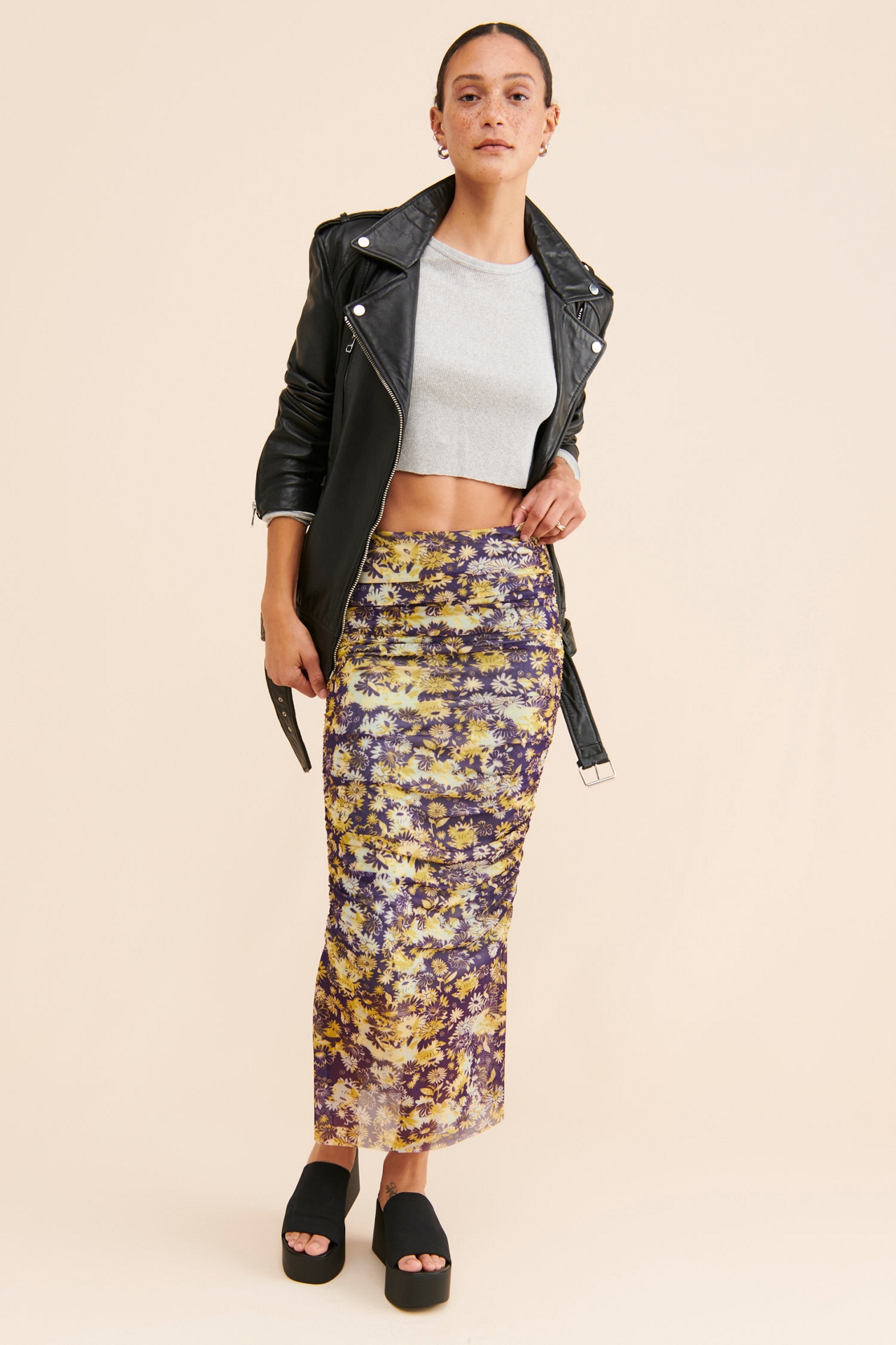 Ruched Mesh Skirt