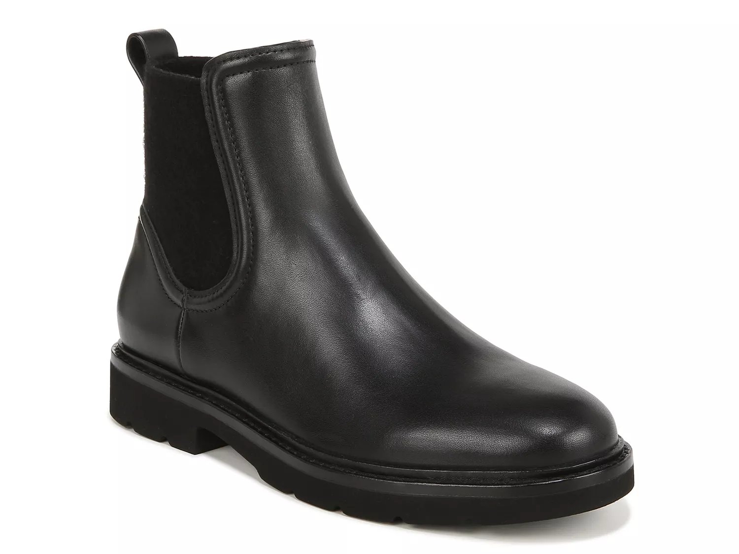 Your spring-summer look can get those extra style points with the Rue Chelsea boot by Vince. The sustainable suede boot features contrast welt stitches for that crafty look and elastic stretch gores for a comfortable fit. A rubber lug sole ensures traction-friendly footing.