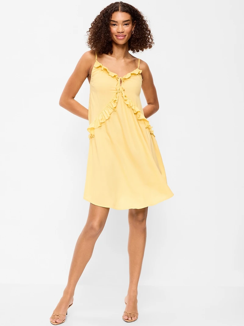Ruffle-Trim Asymmetrical Mini Dress