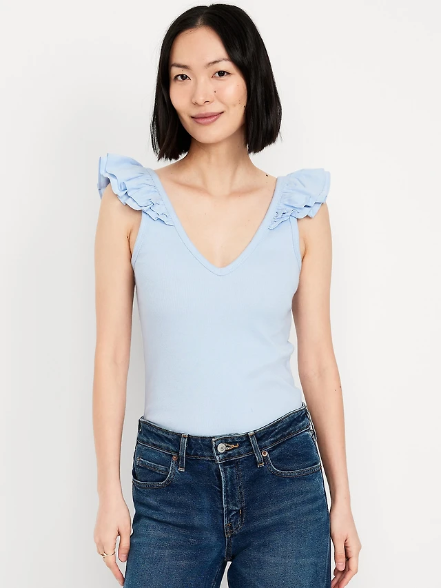 AE Tie Front Ruffle Trim Tank Top