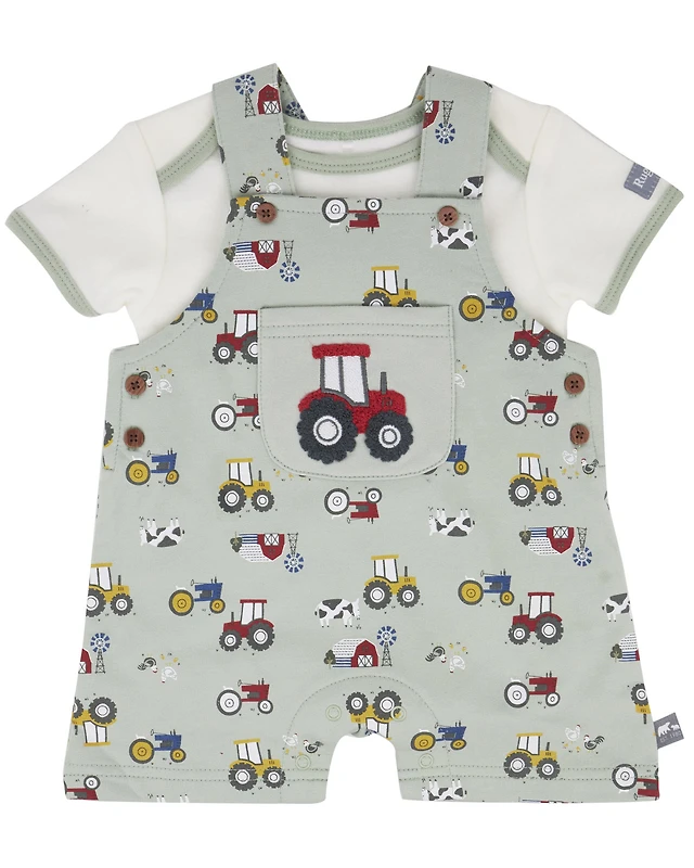 Rugged Bear Infant Boys' Farm Print Shortall Onesie