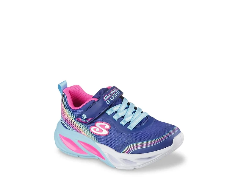 Bring some sparkling style to your little one's casual look with the S-Lights Cosmic Glow Rainbow Beam sneaker from Skechers. This light-up pair features a colorful design to catch the eye, both comfortable and stylish.
