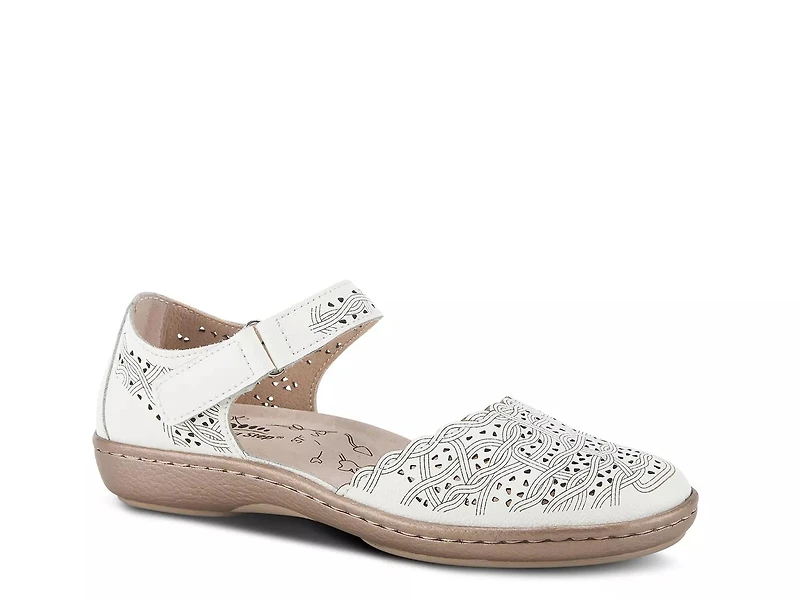 Up your polished look with the Sabriye flat from Spring Step. This Mary Jane-inspired slip-on features a leather construction with laser cuts, etchings and scalloped details to make it appealing. With the padded footbed, you feel comfy all through the day.
