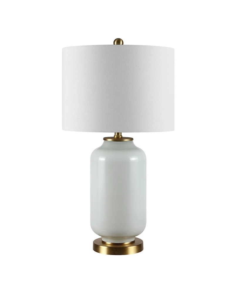 This Amaia table lamp is the perfect finishing touch to any contemporary decor. Amaia flaunts a glamorous juxtaposition of sleek glass and a gold-finished base and finial, and a white drum shade completes the look for today's chic interiors.