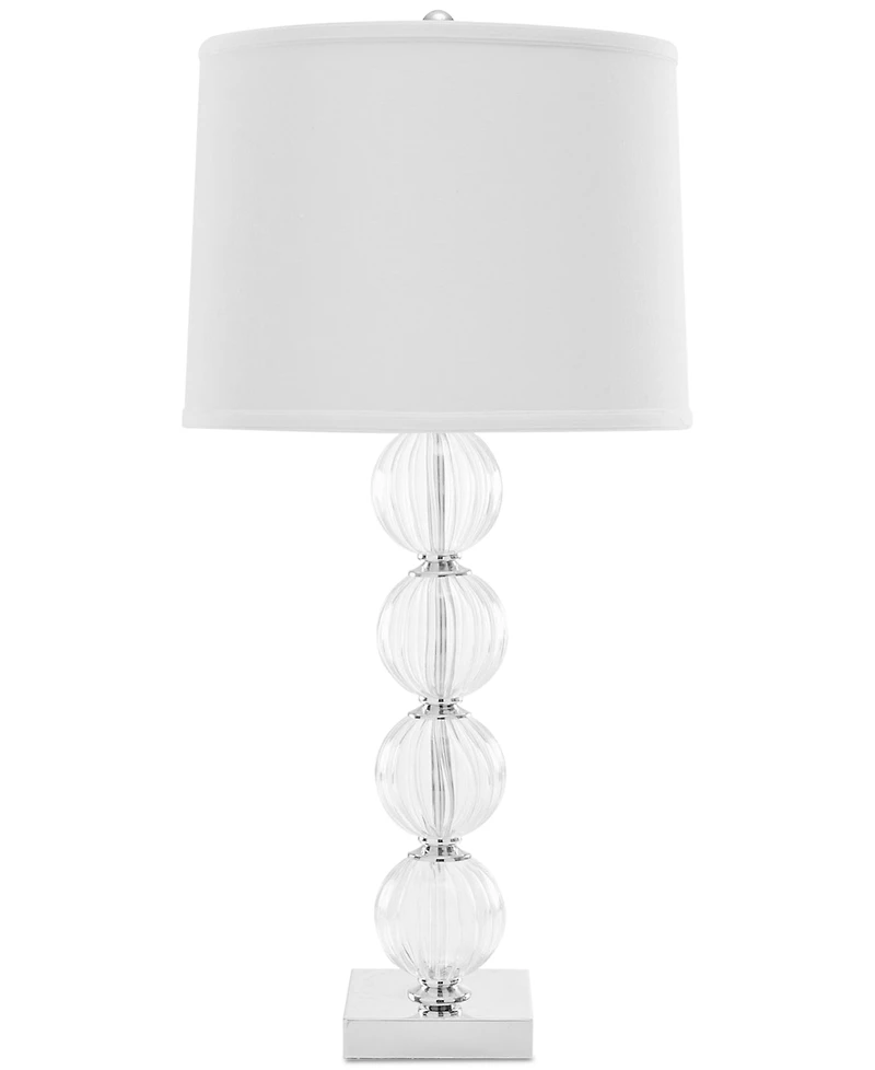 The Amanda table lamp from Safavieh is the essence of modern. Stacked glass orbs evoke playful bubbles and a dark shade grounds the look in sophistication.