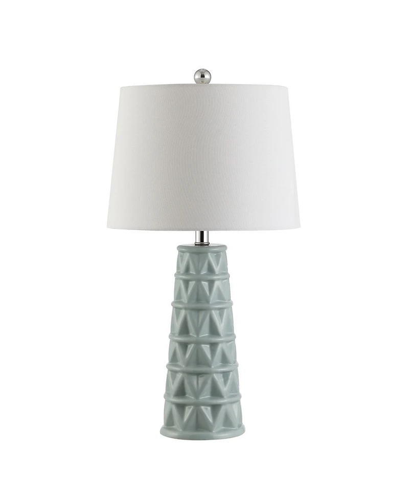 Artistically designed to mimic the towering wonders of the ancients, this Cairo table lamp is an icon of culture and class. Cairo's textured ceramic body recalls magnificent ziggurat architecture, while its soft hue gives a chic contemporary update, completing the look.
