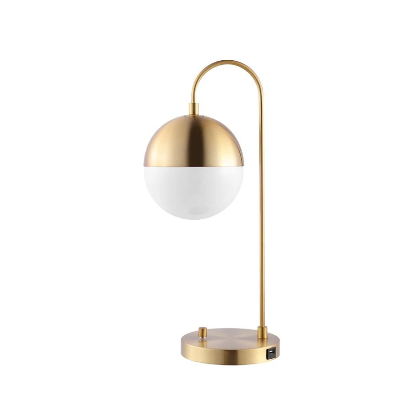 Inspired by edgy Mid-Century modern style, this retro-chic Cappi Table Lamp steals the show in any room. Designed with a luxurious modern finish, Cappi diffuses light from a white acrylic globe shade to create a warm, captivating glow, while a built-in Usb port makes for easy charging.