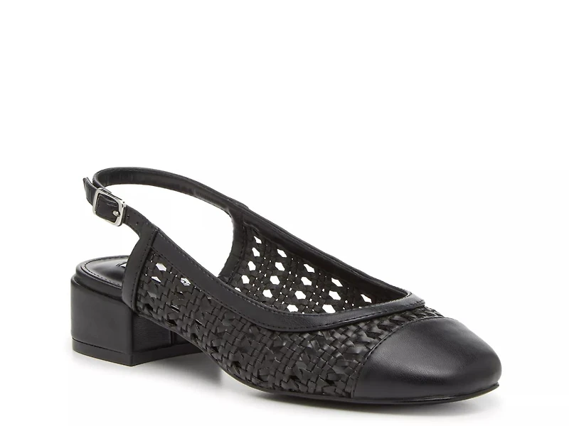 Add a trendy touch to tailored looks with the Safina pump from Steve Madden. This slingback design features an intricate woven upper, a cap toe detail, and a kitten heel for a bit of lift.