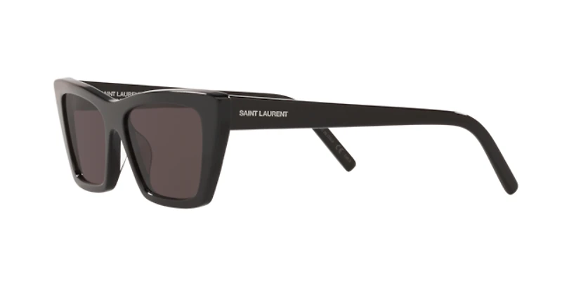 The saint laurent sl 276 mica black sunglasses showcase bold cat-eye frames with a striking full-rim design. Crafted from durable plastic with sleek acetate temples, these saint laurent sunglasses exude timeless sophistication. The black frame is paired with solid grey lenses, combining style and versatile elegance.