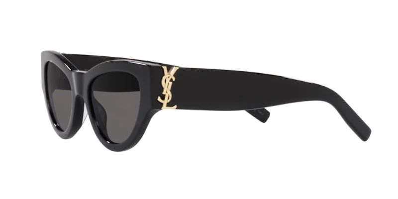 Elevate your eyewear collection with the saint laurent sl m94 sunglasses. These sleek cat-eye frames are crafted from durable plastic with a full-rim design for bold definition. The black sunglasses feature a black frame front that pairs seamlessly with grey solid-color lenses, exuding timeless sophistication. Acetate temples add a refined touch, making these saint laurent sunglasses a stylish choice for any occasion.
