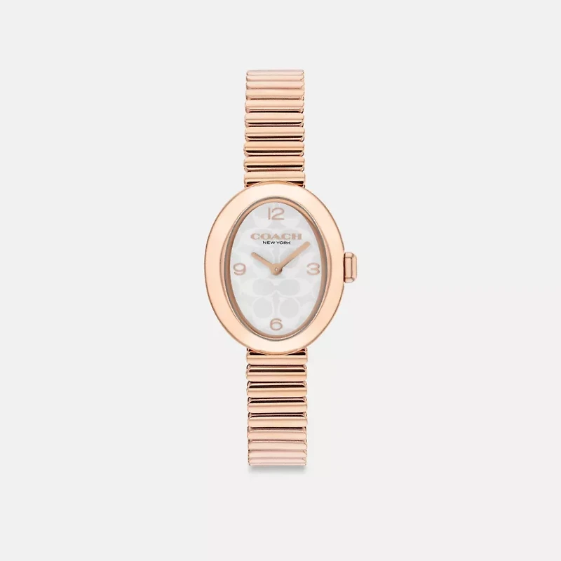 - Rose gold tone case and stretch bracelet