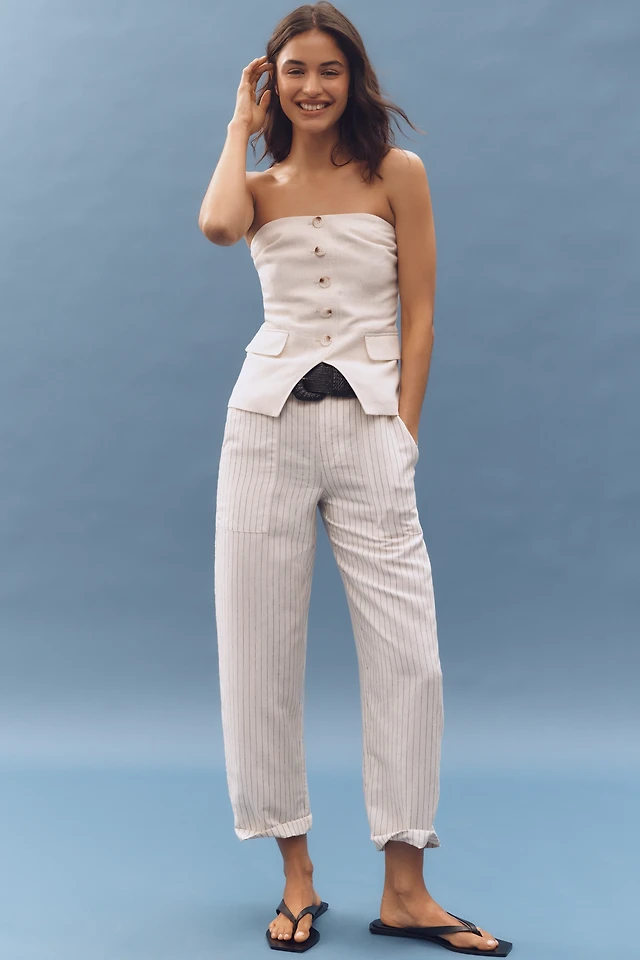 By Anthropologie Linen Blend Pleated Wide-Leg Pants