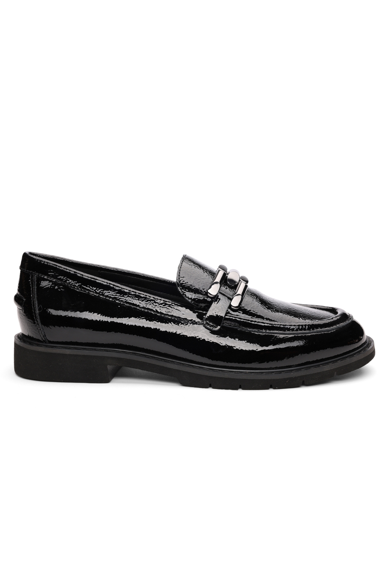 - Black: patent leather upper