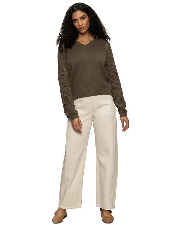Sanctuary Women's Femme Crewneck Openwork Sweater