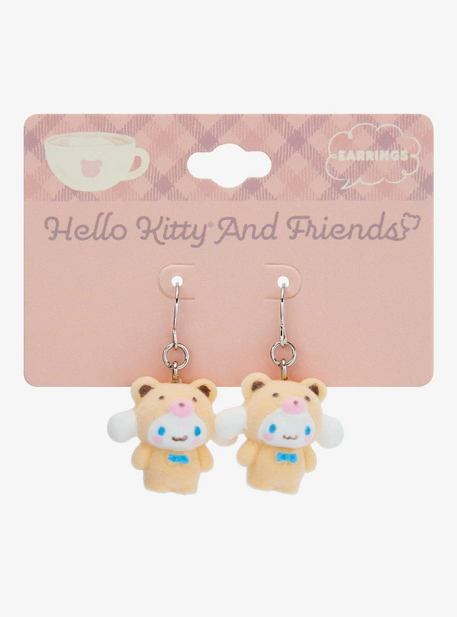 Sanrio Hello Kitty and Friends Flocked Latte Bear Cinnamoroll Earrings