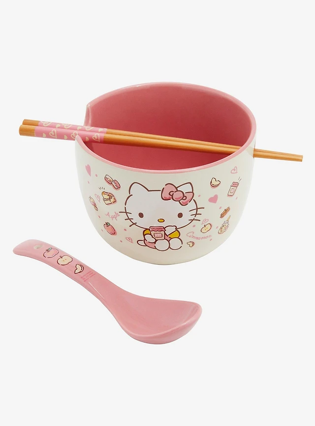 Sanrio Hello Kitty Apple Snacks Ramen Bowl with Chopsticks and Spoon