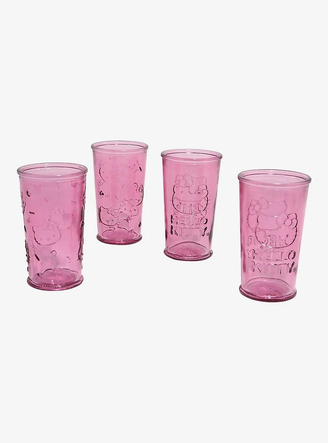Sanrio Hello Kitty Embossed Pink Glass Set