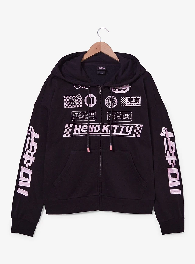 Sanrio Hello Kitty Racing Patches Cropped Women's Plus Zippered Hoodie - BoxLunch Exclusive