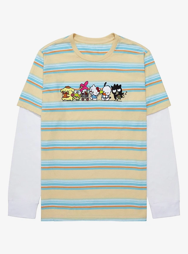 Sanrio Kawaii Mart Group Portrait Striped Layered Long Sleeve T-Shirt - BoxLunch Exclusive