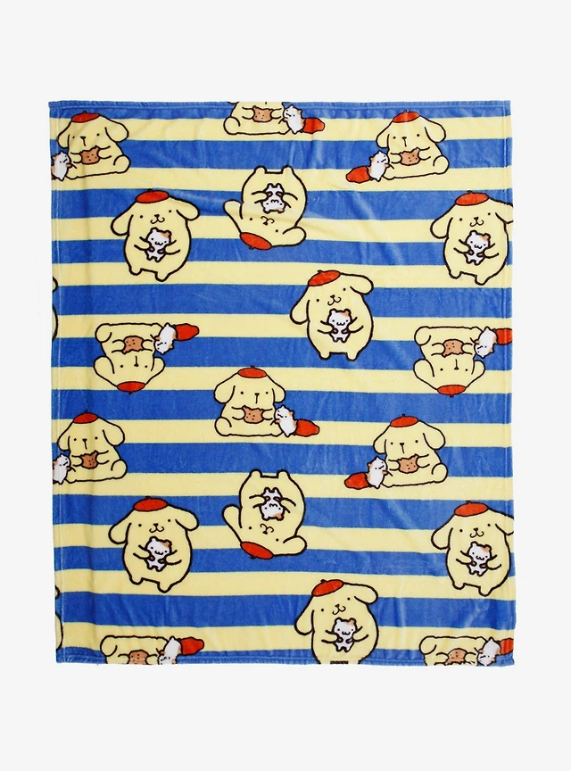 Sanrio Pompompurin Striped Allover Print Fleece Throw - BoxLunch Exclusive