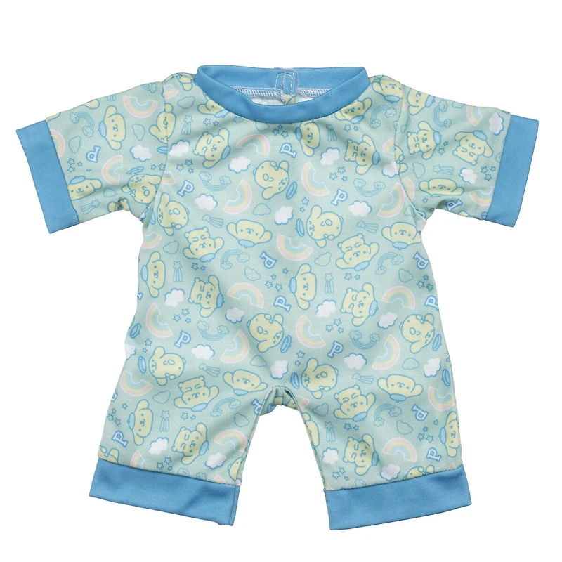 Get your Pompompurin™️ plush all set for any slumber party and dress him in this adorable blue and green PJ sleeper. The Sanrio stuffed animal sleeper features an adorable print pattern of Pompompurin himself!