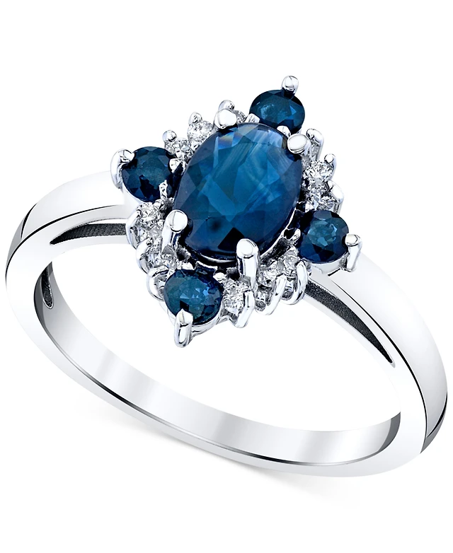 14k White Gold Ring, Sapphire (2-1/5 ct. t.w.) and Diamond (1 Oval Ring
