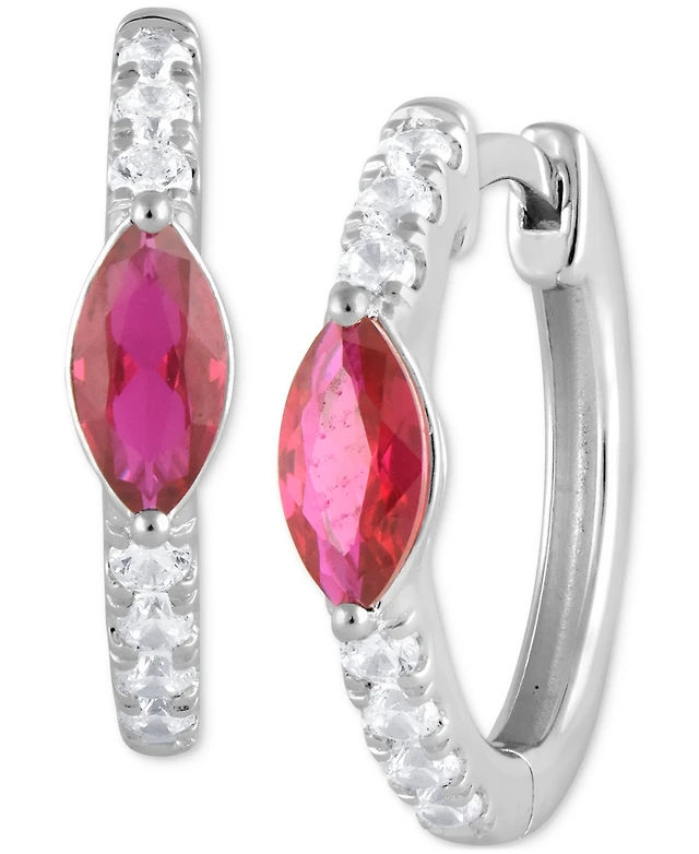 Ruby (1-5/8 ct. t.w.) & Diamond (1/4 Small Hoop Earrings 14k Gold, 0.5 (Also available Emerald Sapphire)