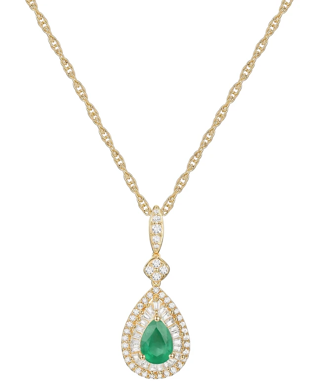 Emerald (5/8 ct. t.w.) & Diamond (1/5 Pear Halo 18" Pendant Necklace 14k Gold (Also Ruby Sapphire)