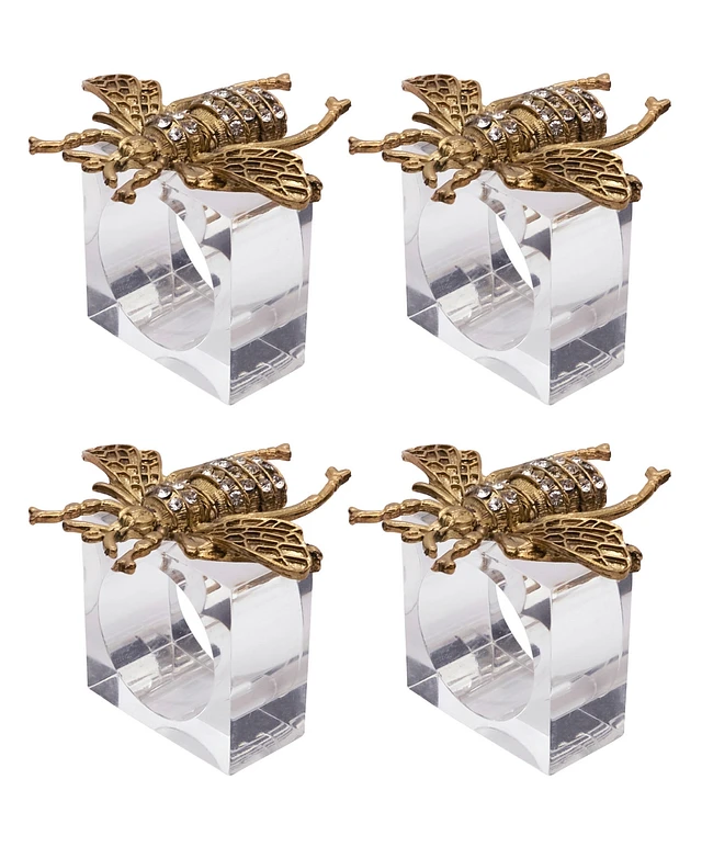 Saro Lifestyle Buzzing Bee Beaded Napkin Ring, Set of 4