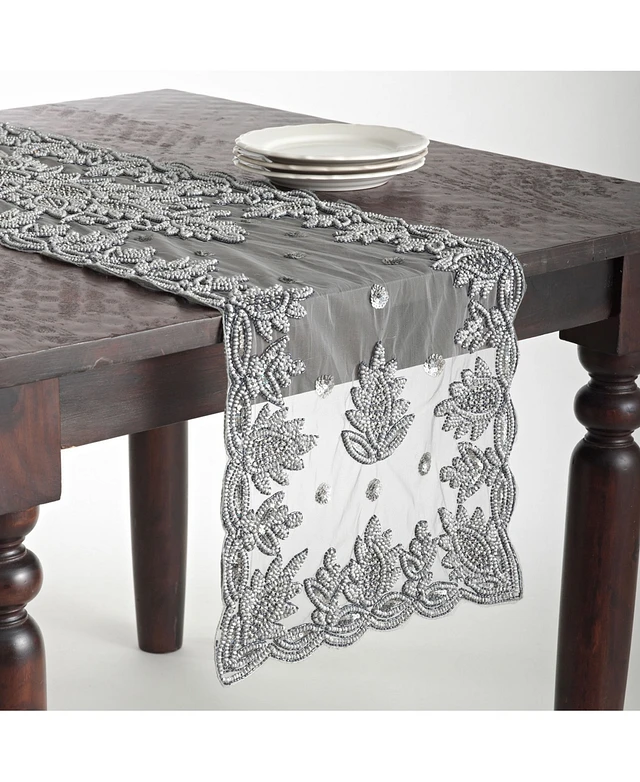 Saro Lifestyle Hand Beaded Design Table Runner, 16" x 90"