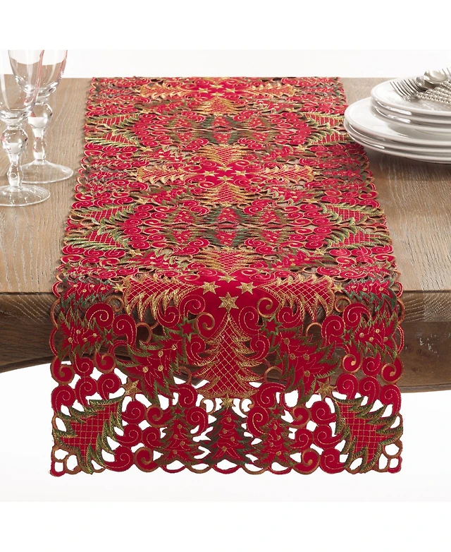 Saro Lifestyle Panettone Collection Holiday Christmas Tree Cutwork Table Runner