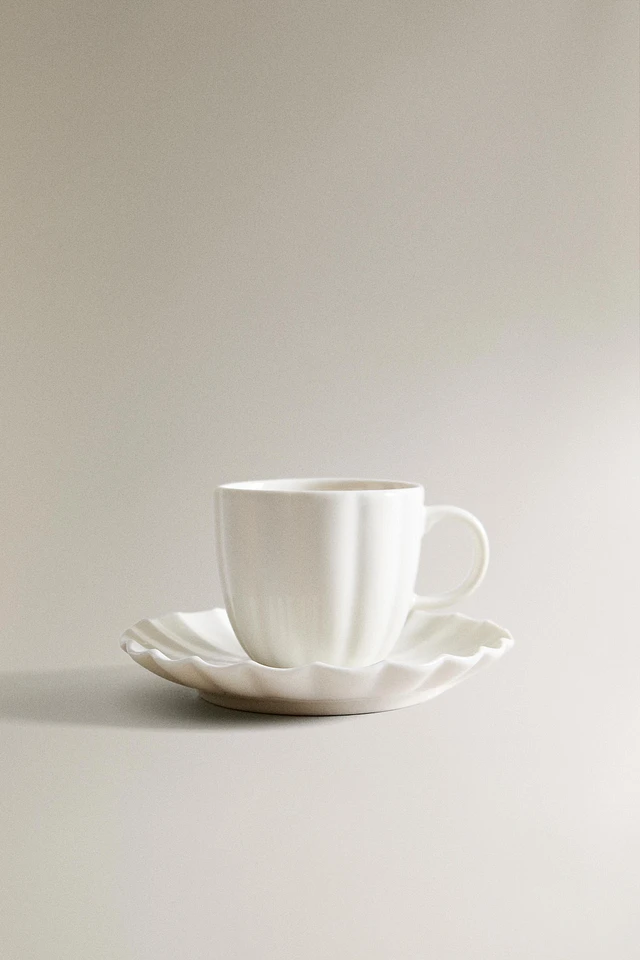 SCALLOPED PORCELAIN MUG AND SAUCER